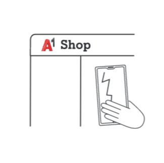 Bitte gib dein kaputtes Smartphone im nächstgelegenen A1 Shop ab.